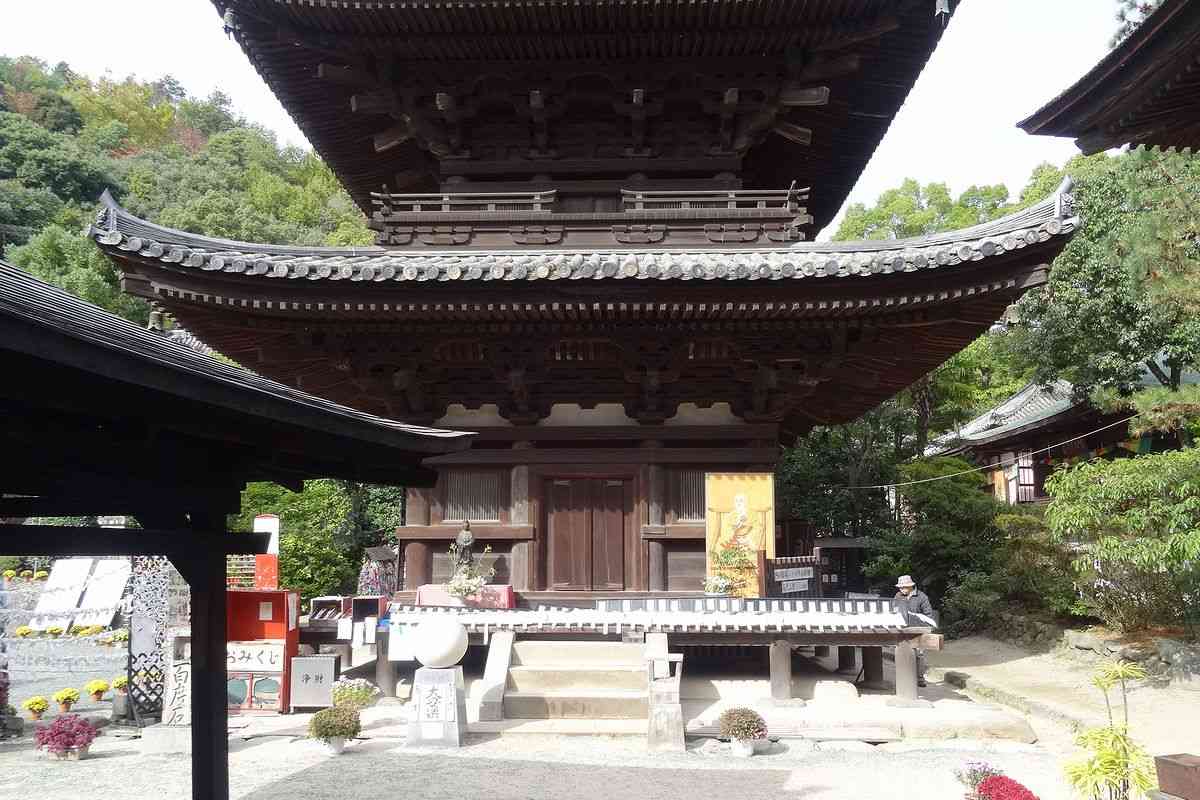 鎌倉後期文保年間(1317-8)の再建。一辺4.9m、高さ約24m。数少ない鎌倉期の貴重な遺構である。当然ながら和様を用いる。 初重内部の四天柱の奥側柱間には来迎壁を設け、来迎壁の前に須弥壇を置き、釈迦三尊像を祀る。外壁内側には真言宗八祖を描き、来迎壁には曼荼羅を描く。四天柱・格天井には彩色を施す。 石手寺:寺伝では神亀5年(728)聖武天皇の勅願により、伊予大守・越智玉純が鎮護国家の道場として伽藍を建立し安養寺と号したという。 弘仁4年( 813)弘法大師が真言宗に改めると伝える。天長8年焼山寺山中で亡くなった衛門三郎の縁起によって石手寺と改めるという。 平安−室町期には66坊を有するも、永録9年(1566)長宗我部氏の兵火のために12間四面重層の金堂を初め堂宇の大半を焼失したとされる。しかしながら今なお多くの古建築を有する。 当山は四国51番札所。 ○2002/12/28撮影:図1〜11 ○四国徧礼霊場記(時期不詳・巻6) 四国徧礼霊場記・石手寺 2010/02/11追加 昭和13年石手寺三重塔:毎日新聞写真 2014/11/16撮影: 伊予石手寺三重塔11 伊予石手寺三重塔12 伊予石手寺三重塔13 伊予石手寺三重塔14 伊予石手寺三重塔15 伊予石手寺三重塔16 伊予石手寺三重塔17 伊予石手寺三重塔18 伊予石手寺三重塔19 伊予石手寺三重塔20 伊予石手寺三重塔21 伊予石手寺三重塔22 伊予石手寺三重塔23 伊予石手寺三重塔24 伊予石手寺三重塔25 伊予石手寺三重塔26 伊予石手寺三重塔27 伊予石手寺三重塔28 伊予石手寺三重塔29 伊予石手寺三重塔30 伊予石手寺三重塔31 伊予石手寺三重塔32 伊予石手寺三重塔33 伊予石手寺三重塔34 伊予石手寺三重塔35 伊予石手寺三重塔36 伊予石手寺三重塔相輪 伽藍は南面し、回廊を進むと、正面に楼門(二王門、国宝、鎌倉期文保2年<1318>、正面3間・重層入母屋造り本瓦葺き)がある。 楼門の正面に本堂(鎌倉・重文)、左に三重塔・鐘楼(南北朝・重文)・護摩堂(南北朝・重文)を配する。また境内東側奥には訶梨帝母天堂(鎌倉・重文)もある。 石造品には五輪塔(鎌倉後期、重文)<未見>もある。 以上の国宝重文の他、大師堂、茶堂大師、鐘楼、阿弥陀堂、観音堂、十二社権現、絵馬堂、経蔵、弥勒堂、弁財天などと近年の建立と思われる宝物館、安養閣、太講堂などがある。 石手寺参道回廊 仁王門<楼門>(国宝) 2002/12/28撮影: 石手寺楼門1 石手寺楼門2 石手寺楼門3 石手寺楼門4 石手寺楼門5 石手寺仁王門11 石手寺仁王門12 石手寺仁王門13 石手寺仁王門14 石手寺仁王門15 石手寺仁王門16 石手寺仁王門17 石手寺仁王門18 石手寺仁王門19 石手寺仁王門20 本堂(重文) 2002/12/28撮影: 石手寺本堂1 石手寺本堂2 石手寺本堂3 石手寺本堂1 石手寺本堂2 石手寺本堂3 石手寺お茶所 鐘楼(重文): 石手寺鐘楼1 石手寺鐘楼2 石手寺鐘楼3 石手寺鐘楼4 石手寺弥勒堂 護摩堂(重文); 石手寺護摩堂 石手寺一切経蔵 石手寺大師堂 大師堂内部 訶梨帝母天堂(重文); 訶梨帝母天堂1 訶梨帝母天堂2 訶梨帝母天堂3 訶梨帝母天堂4 訶梨帝母天堂5 訶梨帝母天堂6 訶梨帝母天堂7 石手寺十二社権現:伊予太守越智玉純は十二所権現などの諸仏の来迎を霊感し本寺を建立という。 本寺の山号は熊野山と称するがこの寺伝によるものなのであろうか。 石手寺鐘撞堂 石手寺阿弥陀堂 石手寺本坊内門 石手寺本坊 ----------------------------------------- ○石手寺地蔵院六角二層堂石手寺地蔵院 楼門前横の塔頭と思われる院坊(地蔵院・唯一残った寺中という)に六角子安地蔵堂がある。 簡略な建築であるが、長尺な堂宇(初層)に六角形の上層を載せ、相輪を上げた二層堂である。 2002/12/28撮影:子安地蔵堂 2014/11/16撮影; 地蔵院子安地蔵堂1 地蔵院子安地蔵堂2 地蔵院子安地蔵堂3 地蔵院子安地蔵堂4 ----------------------------------------- ○石手寺 主として、ビルマ戦(インパール作成)の追悼の意がある平和記念塔と思われる。内部は見学していないが、誰が何のために建立したのか良く理解できない。 昭和54年頃建立されたものと思われる。 2014/11/16撮影: 石手寺平和記念塔1 石手寺平和記念塔2 石手寺平和記念塔3 石手寺平和記念塔4 ----------------------------------------- ○石手寺三重小塔? 上に掲載の2014/11/16撮影:伊予石手寺三重塔36の右端中央付近に三重小塔(あるいは五重小塔)とも思われる塔婆が写る。現地では全く気が付かず、後日の写真の整理中に気が付く。 Webで検索するも情報なし。写る姿も小さく判然とはせず、はたして三重(五重)小塔なのかどうかもよく分からない。<現地未見> 石手寺裏山はミニ四国88所霊場があり、門前の案内板(下に掲載・部分)には三重塔(五重塔)の小塔のようなものが描かれる。写真の背景は石手寺裏山に該当し、あるいはここに小塔があるのかも知れないが、まったく不明である。 石手寺三重小塔 門前の案内板 ----------------------------------------- 付録;伊予宝厳寺:石手寺近く道後に時宗本山宝厳寺がある。 寺伝では天智天皇4年(665)越智守興の創建という。当初は法相宗であったが、平安中期、天台宗となる。 正応5年(1292)一遍上人の弟にあたる仙阿によって再興され、時宗となり、時宗奥谷派本山と