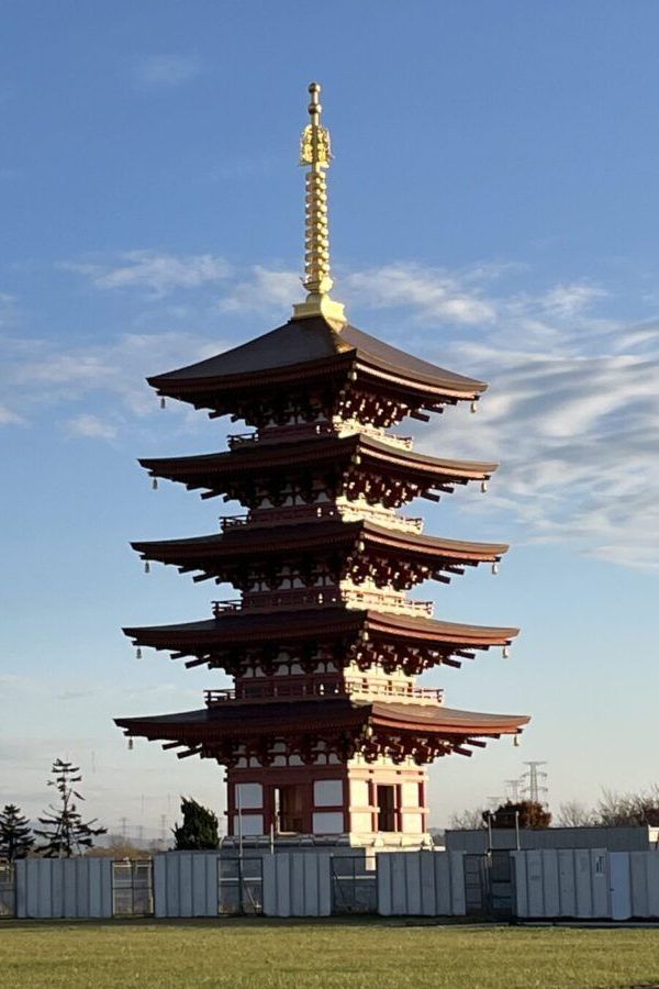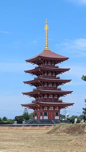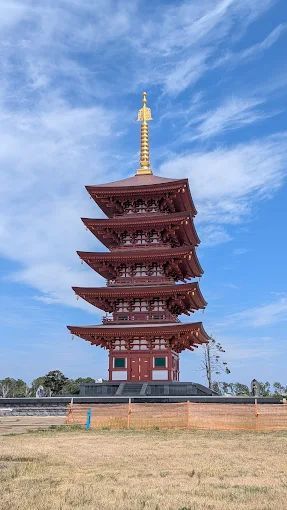 2000年2月地鎮祭。2001年5月落慶。海住山寺五重塔をモデルとすると云う。高さ21m。本瓦葺。本尊は大日如来、薬師如来など4尊