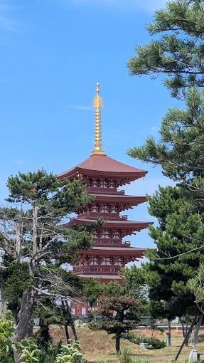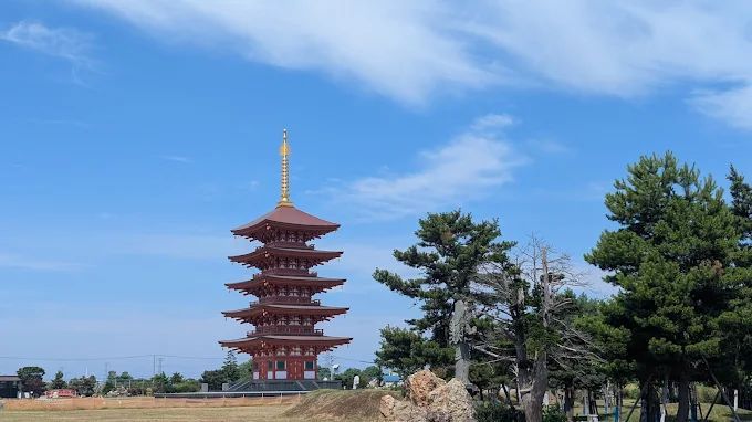 1996年建立、純和様による木造塔。一辺7.28m(4間)、総高39.3m。棟梁は大室勝四郎、青森産ヒバ材を用い