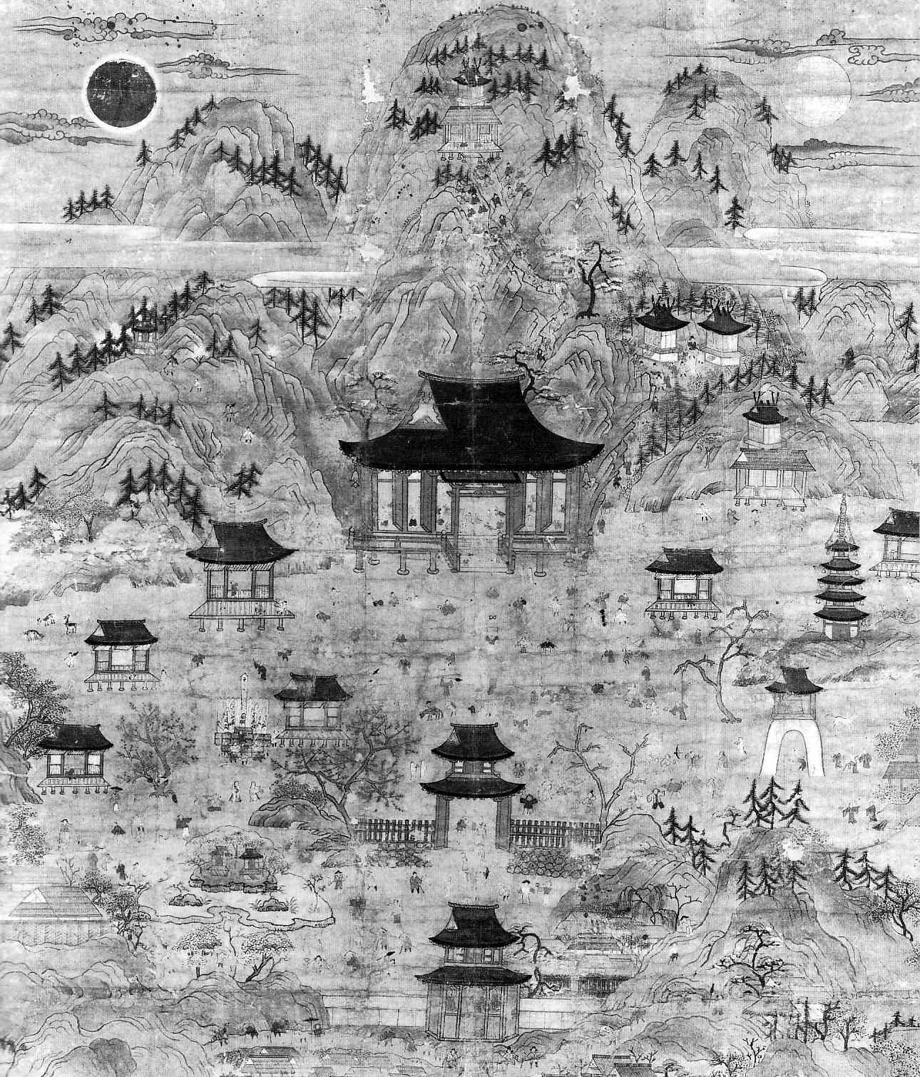 当図には五重塔が描かれる。下掲載の「丹後国加佐郡旧語集」では、文治5年(1189)頃五重塔が再建されたと記す。