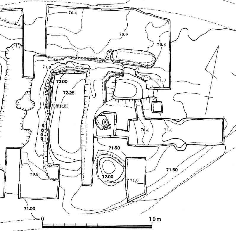 調査結果、心礎やその据付の形跡はなし。(多宝塔であった可能性もあるのでは?)