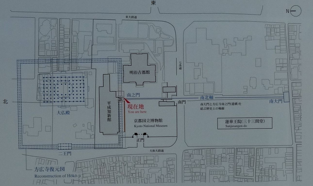 方広寺境内と京博配置図 方広寺廻廊・南之門・南辺石垣