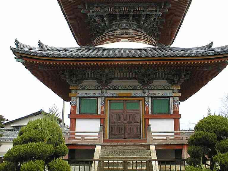 正保年間(1644-7)建立。軸部・組物は唐様を用いる。但し軒は平行垂木。 たびたび焼失・再興を繰り返すと云う、今は尾張4観音の一つとして隆盛と思われる。他の尾張流行観音霊場と同様に醜悪な本堂を持つ。 東海道名所圖會 巻之3:「東海道名所圖會・巻の三」笠寺(部分)より 尾張名所図会 巻之5より 宝塔に関する記事はなし。 尾張名所図会(全図) 2007/06/22追加: 尾張名所図会 巻之5 笠寺西門・多宝塔:明治期の撮影と云う:「写真に見る明治の名古屋」より 2010/07/06追加: 昭和27年笠寺観音:毎日新聞報道写真 |