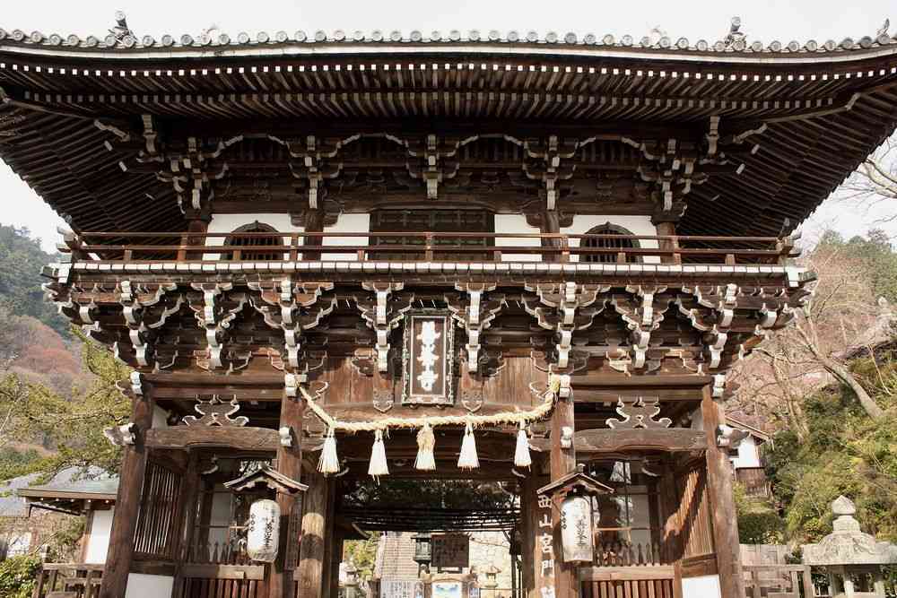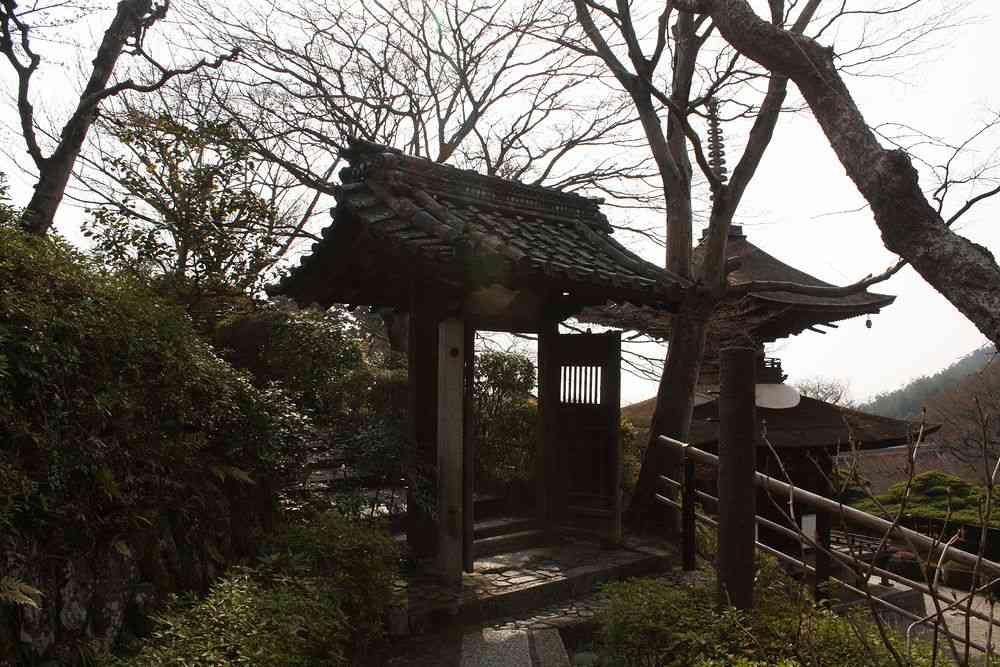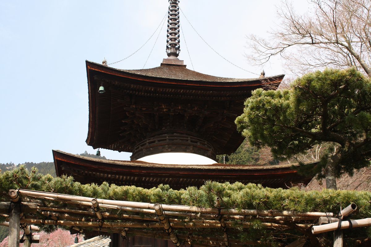 宝永6年(1709)建立。本瓦葺。2001年に修理が終わったばかりのようで、丹塗りも鮮やかに当初の姿を取り戻したようです。和様の伝統を踏まえた、標準的な規模の塔です。 内部には禅宗様の須弥壇を置き、五仏を安置する。下層は一辺が4.6mで中央間を14支・両脇間を10支に割り付ける。上層は下層の中央間よりやや大きく、径2.3mとしており、下層に比して上層の立ち上がりが低いため、強い安定感を持つ秀作の塔婆です。平成13年兵庫県県文に指定。なお次のことが判明している。露盤と鬼瓦に宝永6年(1709)の刻銘がある。大工は大工村神田作左衛門である(下層板壁の墨書)。瓦は姫路の河上孫兵衛重次作である(鬼瓦銘)。 当寺は貞享4年(1687)の奥山寺縁起によると、法道仙人の開基で孝徳天皇の時代に伽藍が創建されたと伝える。高野山真言宗。今なお環境抜群の地に立地し、南面する仁王門から参道の両側に塔頭跡及び塔頭が並ぶ。参道の最奥に急な150段の石段が立上り、本堂に至る。多宝塔は、さらに、本堂左の50数段石段上の平坦地に建つ。寛保2年(1742)寺中7、寺中人数23、明治5年寺中3、寺中人数10とされる。 図6:参道及び塔頭、図7:仁王門 |
