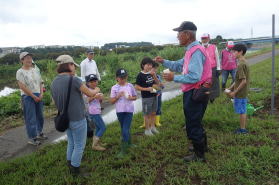 ■菜の花畑を作ることにした目的や意味合いを熱心に聞いてくれているプレーパークの会の皆さん |