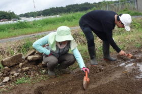 ■雨上がりでたっぷり水分を含んでいて種まきにはちょうどいい具合でした。 |