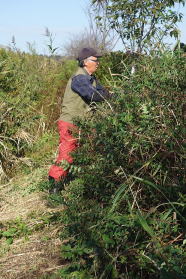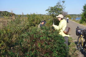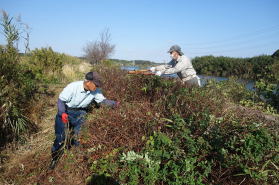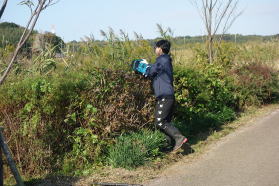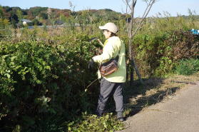 花壇周囲の草刈り、剪定・つる草退治などを実施しました。