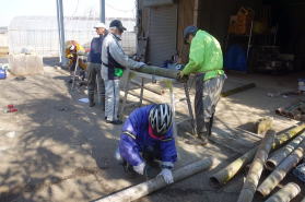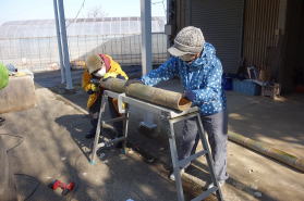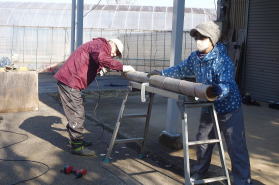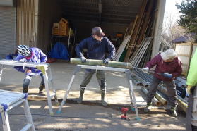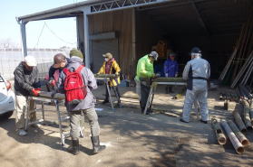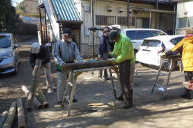 道具類を保管している農家倉庫の前庭をお借りして作業を実施しました。