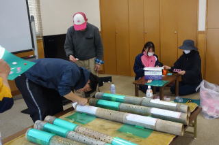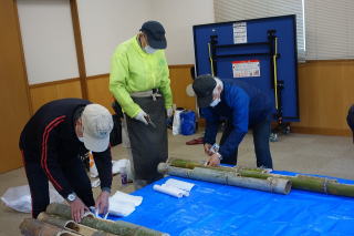 ■前回に引き続き竹灯り作りを開始しました。 |