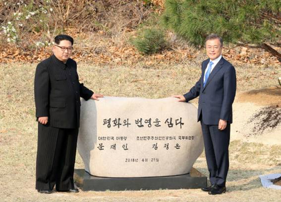 大韓民国ムン・ジェイン大統領と朝鮮民主主義人民共和国のキム・ジョンウン国務委員長は、平和と繁栄、統一を念願する全同胞の一致した志向を込めて、韓半島の歴史的な転換が起こっている重要な時期に、2018年4月27日に板門店「平和の家」で南北首脳会談を行った。