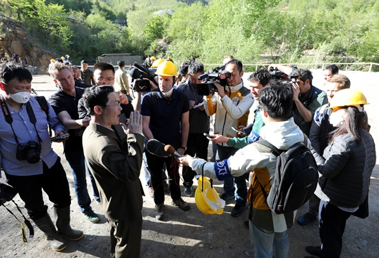 2番坑道の隣の空き地で実施した事前ブリーフィングで、康景豪(カン・ギョンホ)副所長は、“核試験場廃棄は、試験場にあるすべての試験坑道を、爆発の方法で崩落させ、坑道の入り口を完全に閉鎖し、すべての観測所と地上の構造物を撤去する方法で行われる。