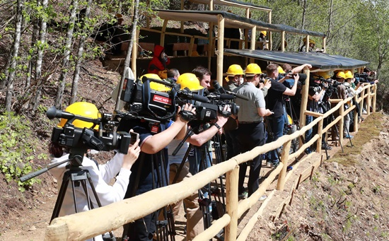 23日午後7時ごろ、記者団を乗せて元山(ウォンサン)駅を出発した特別列車は24日午前6時15分ごろ、咸鏡北道(ハムギョンプクト)ジェトク駅に到着した。 海抜1,300mに位置した核実験場まで21km区間は車で移動した。 午前8時19分、核実験場の北側にある2度坑道の前に到着した。
