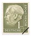 ドイツ郵政のシンボルマークであったポストホルン図案シリーズに代わって、テオドール・ホイス初代ドイツ連邦大統領の肖像を用いたシリーズの切手が発行されました。発行日の1月31日は、ホイスの70歳の誕生日です。