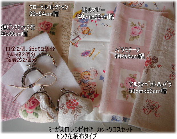 | ミニがま口レシピ付きカットクロスセット ピンク花柄タイプ \1850+送料 |
