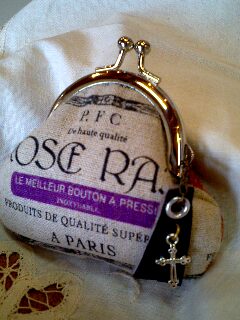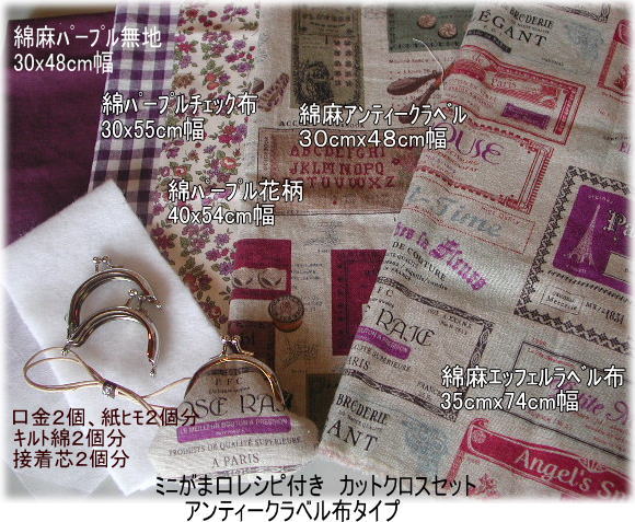 ミニがま口レシピ付きカットクロスセット アンティークラベル布タイプ ¥1800+送料 |