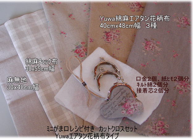 ミニがま口レシピ付きカットクロスセット Yuwaエアタン花柄布タイプ ¥1850+送料 |