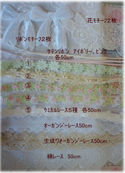 *完成品と同じ布やレースは入ってません..一部変わってます