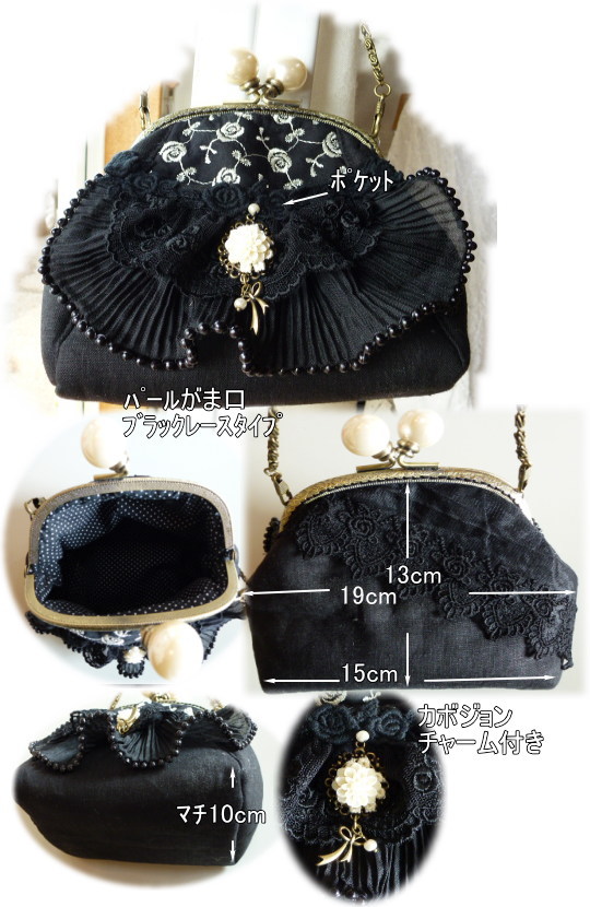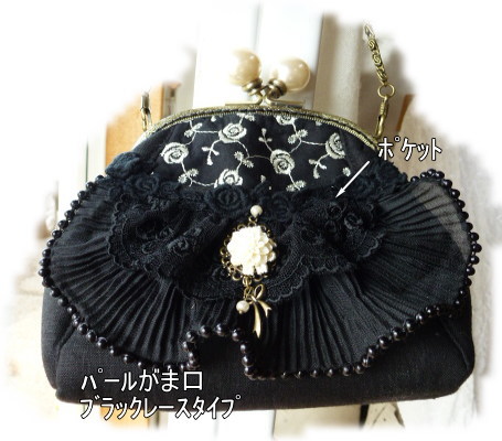 | パール口金 ブラックレースがま口キット ¥2950+送料メール便\200又はミニ宅配便\440 表布をお選び下さい ブラックリネンタイプ 御注文は こちらのカートからお願い致します *ベルベットは少し厚みがありますので リネンの方が作りやすいと思います. 持ち手チェーンは別売り(1本\280) |