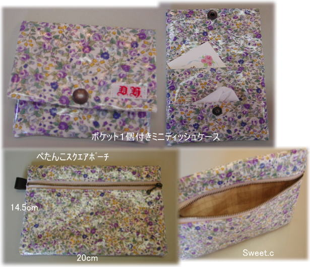 ポケットティッシュケースと ぺたんこスクエアポーチのレシピを差し上げます.