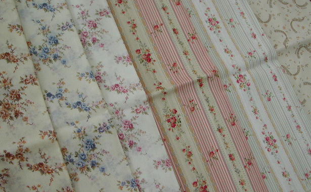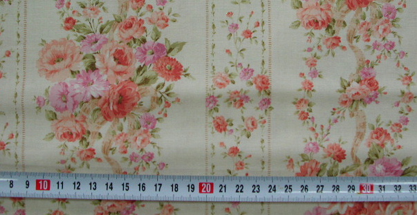 | C-16 21B 花柄布 1. 薄ベージュ地 画像よりベージュぽいです. 1m ¥1000 (税込¥1050) |