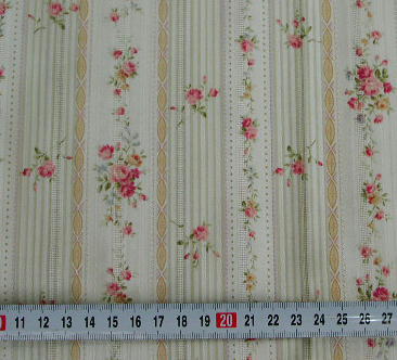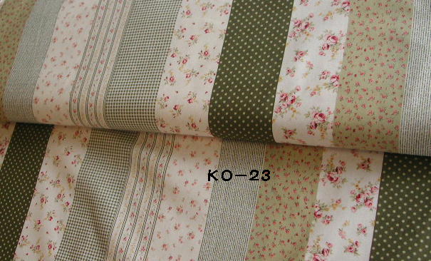 | KO-23 花柄ボーダーパッチ グリーン系 110cm幅 綿100% \940/m (税込み\987/m) |