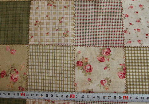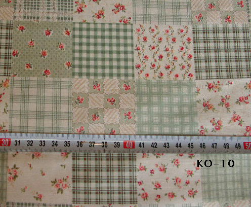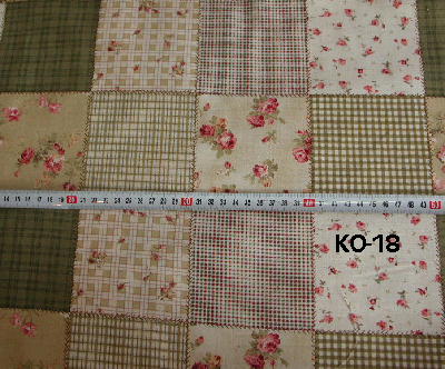 | KO-18 花柄パッチ グリーン系 麻混のような感じです. 110cm幅 綿100% \1000/m (税込み\1050/m) |