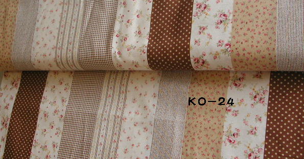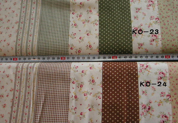 | KO-24 花柄ボーダーパッチ 茶系 110cm幅 綿100% \940/m (税込み\987/m) |