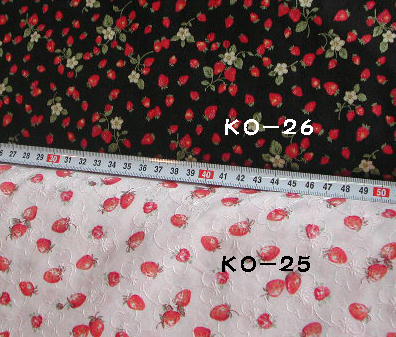 | KO-26 いちごドビー/黒地 ¥1100/M (税込み\1155/m) 110cm幅 |
