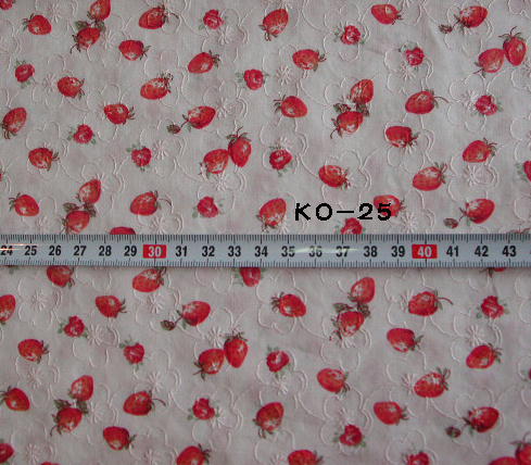 | KO-25 いちごレース 薄ピンク地 ¥680/M(特価) (税込み\714/m) 110cm幅 刺しゅう幅100cm |