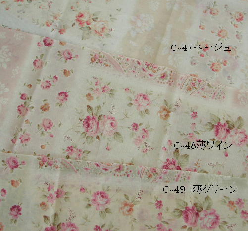 | C-49 綿ボイル バラ 3.グリーン 1m ¥1000 (税込¥1050) 薄い柔らかい布です |