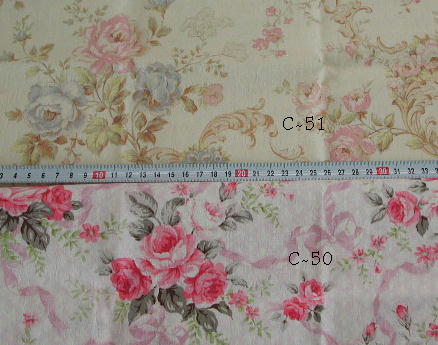 | C-50 バラ大柄 1.ピンク 1m ¥1050 (税込¥1102) 浮き出た感じの 地模様があります. |
