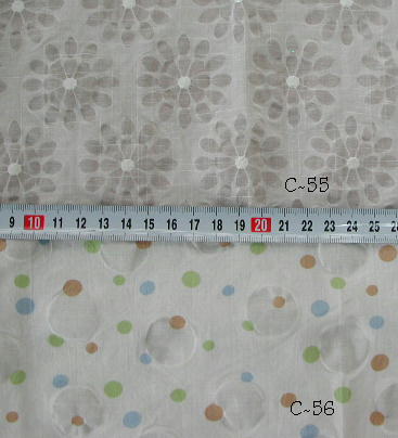 C-55 綿スラブ 1.生成 106cm幅 1m ¥1000 (税込¥1050) C-56 綿ローン水玉 110cm幅 1m ¥1000 (税込¥1050) |