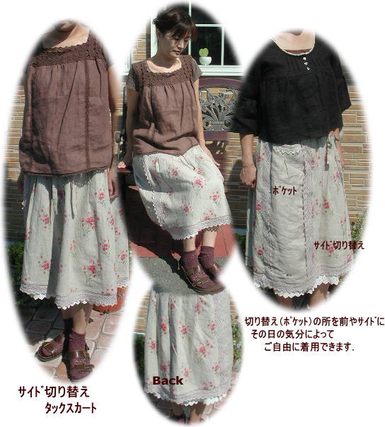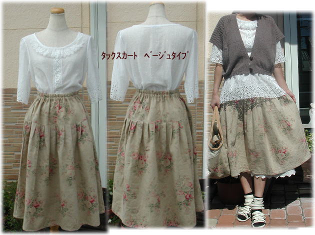 切り替えタックスカート ポケット付き キット価格 \3430 ワンサイズのみ こちらは実物サイズの型紙はありません サイズを書いてますので 布に直接 じか裁ちしてください. キット内容 YUWA綿麻布 麻布 麻100%トーションレース2種 ウエストゴム 接着芯 |