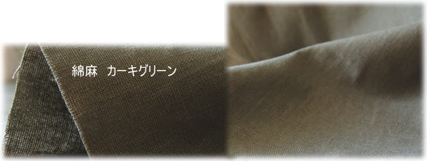 | 綿麻ソフトキャンバス カーキタイプ 綿45%麻55% 107cm幅 2ポケットフレアパンツキット ¥3150+送料 ![]() |