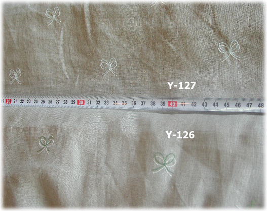| Y-127リボン刺繍水色 Y-126リボン刺繍緑色 | Y-129花刺繍 黒 Y-128 花刺繍 赤 |