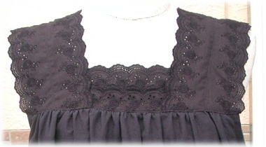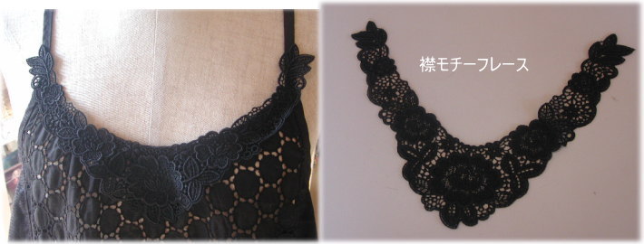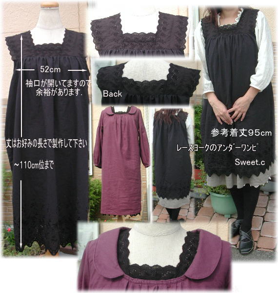 | レースヨークアンダーワンピキット ブラックタイプ キット価格\3500+送料 メール便¥200又はミニ宅配便 ¥440のどちらかお選び下さい ワンピのインナーにご着用下さい.. 衿口や裾からレースがのぞいてカワイイです. キット内容 型紙、レシピ、 綿100%スカラップレース布、ブラック綿刺繍レース |