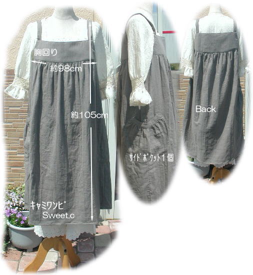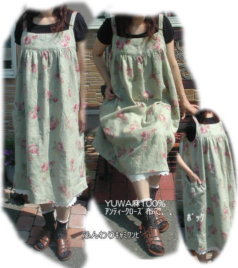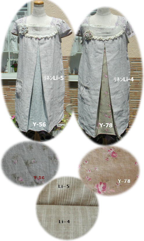 | 綿麻混洗い布(綿70%麻30%) 麻混で薄地のしなやかな布です. とっても素敵な布です. アンダーにペチコートを着用して下さい 色合いはこちらの方が近いです ↓ ![]() ![]() ![]() |