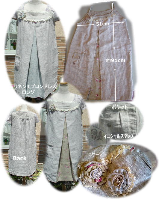 リネンエプロンドレス&コサージュ キット レシピ、麻無地、麻ライン布、綿麻スラブ花柄、トーションギャザーレース ご希望イニシャルスタンプ入りテープ、 アンティークイニシャルテープ(ご希望のイニシャルにはなりません) コサージュ用花芯、ピン *エプロンドレスはレシピのみの販売はしてません.. 布はお好きな組み合わせでキット組が出来ます. 麻布 Li−4. 又は LI−5 からお選び下さい 中心の花柄はYUWA綿麻スラブ135cm幅よりお好きな布をお選び下さい. ポケットに付けるイニシャルスタンプのテープ入り お好みのアルファベット1文字をお知らせ下さい. |