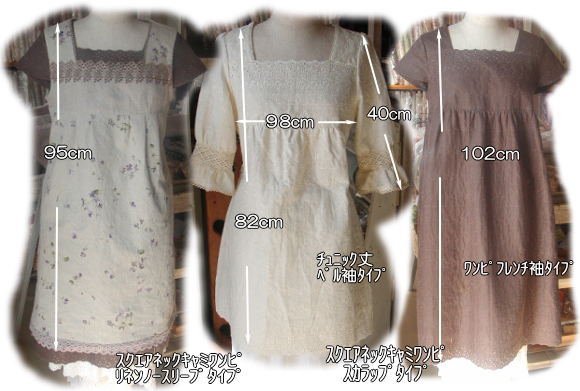 | スクエアネックキャミワンピ 3点とも基本の型紙は同じです. |