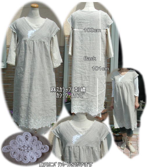 2008.5.8 カシュクールワンピ麻スカラップ刺繍 キットをUPしました