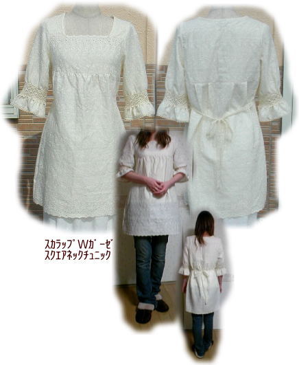 2009.7.27 スカラップレース切り替えスモッグブラウスとワンピのキットをUPしました.