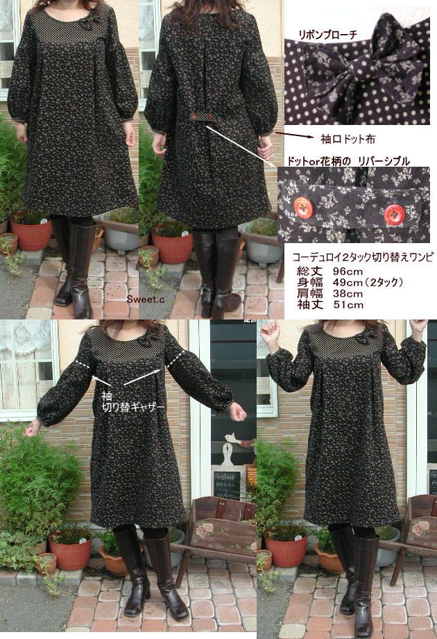| コーデュロイ 2タック切り替えワンピ長袖タイプキット サイドポケット1、リボンブローチ付き 後ろ可愛いノースリーブワンピの型紙も付いています♪ キット価格\4200+送料 メール便¥200又はミニ宅配便 ¥440のどちらかお選び下さい キット内容 型紙、レシピ、コーデュロイ布2種、接着芯、 ブローチピン、ボタン2個 |