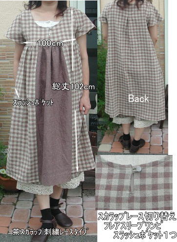 スカラップレース切り替え フレアスリーブワンピキット スラッシュポケット付き ¥3900+送料 メール便¥200又はミニ宅配便 ¥440のどちらかお選び下さい 中心のwガーゼスカラップレースの タイプをお知らせください SG-2モカタイプ SG-1生成りタイプ キット内容 型紙、レシピ 綿麻チェック布 Wガーゼスカラップ刺繍布 接着芯 ボタン1個 |