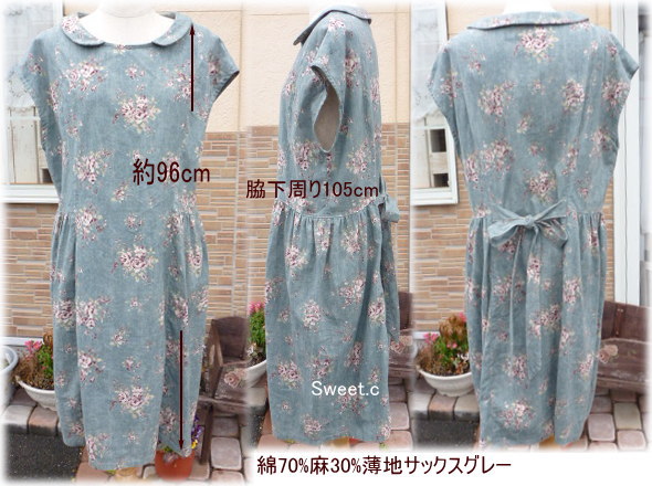 | サイドギャザー後ろリボンフレンチワンピキット 綿麻薄地サックスグレータイプ108cm幅 キット価格¥4180+送料 メール便\200又はミニ宅配便\440 再販 在庫あります 入っている材料 型紙、レシピ、布、接着芯 |