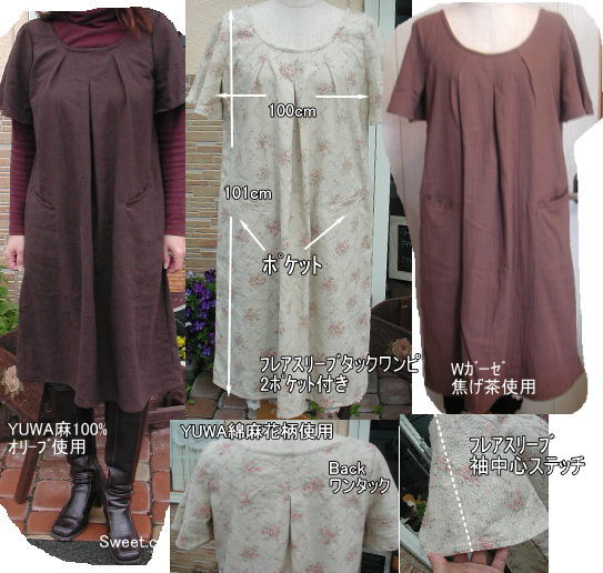 2009.2.19フレアスリーブタックワンピキットをUPしました