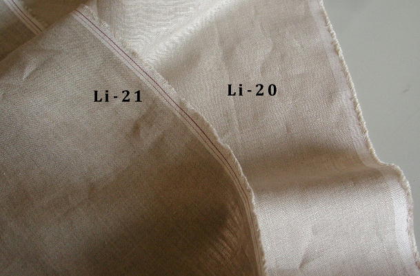 | Li−21 ナチュラル無地 赤ライン耳 麻100% 135cm幅 ¥1480/m (税込み\1544/m) ソフトで 透け感がなく お洋服に最適です Li-20より少し 濃いめの色です |
