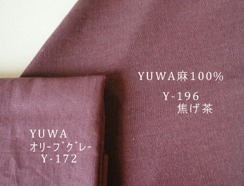 | Y-196 YUWA麻100% ソフト加工 H 焦げ茶 140cm幅 (参考価格¥2310/m) ¥1950/m YUWAの麻です. リネン特有のネップが少々あります 完売したY-172のオリーブグレーと y-158オリーブの中間色です とってもいい色合いです ←この画像の色に近いです |