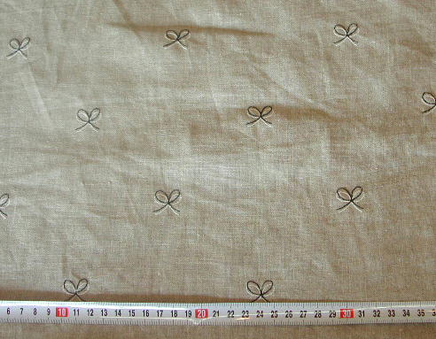 | Y-67 ダブルリボン刺しゅう 白、黒 麻100% 140cm幅 刺しゅう幅120cm ¥2300/m (税込み¥2415/m) |
