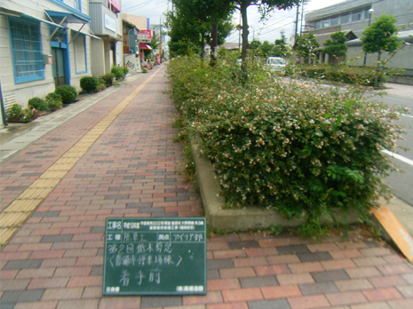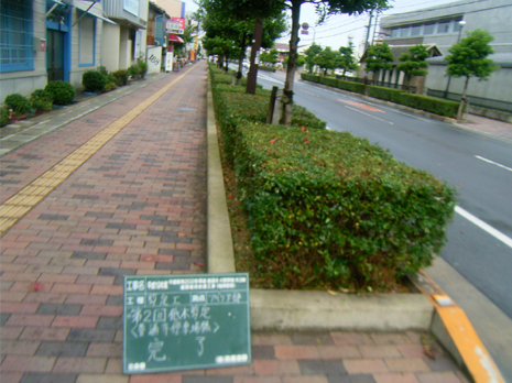多度津中学校前の三叉路にて寄植剪定完了 |