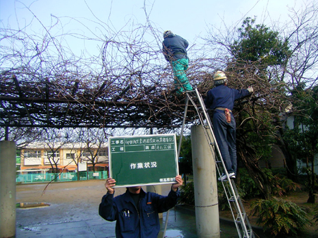 多度津駅前にて、高木ケヤキ剪定完了 |
